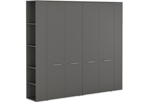 Шкаф средний широкий комбинированный с боковыми стеллажами Валетта Антрацит, цвет антрацит