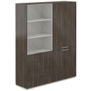 Шкаф средний 4 двери с прозрачным стеклом Дания, цвет серый камень + брэнсон трюфель