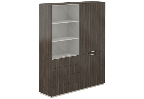 Шкаф высокий с прозрачным стеклом 4 двери Дания, цвет брэнсон трюфель + серый камень