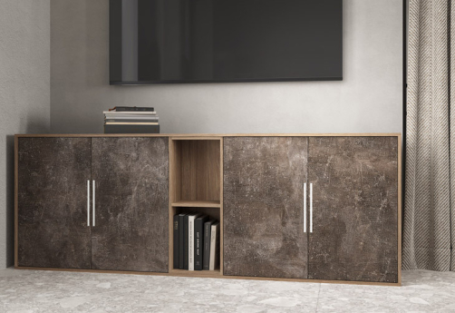 Шкаф низкий 4 створки, с нишей Супер Т, цвет сосна + бетон