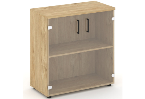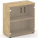 Шкаф средний широкий (2 низких фасада стекло прозрачное) ЗС ЛДСП Сити Офис Вуд, цвет тиквуд светлый