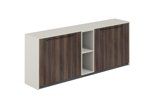 Шкаф низкий составной (2 закрытых шкафа + 2 стеллажа) Луара, цвет дуб адриа + серый