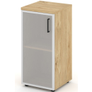 Шкаф высокий узкий правый (1 низкий фасад ЛДСП + 1 низкий фасад стекло прозрачное) ЗС ЛХДФ Сити Офис Вуд, цвет тиквуд светлый