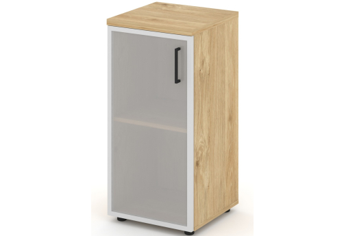 Шкаф низкий узкий левый (1 низкий фасад стекло сатин в раме) ЗС ЛХДФ Сити Офис Вуд, цвет тиквуд светлый