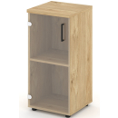 Шкаф высокий узкий левый (1 низкий фасад ЛДСП + 1 низкий фасад стекло прозрачное) ЗС ЛХДФ Сити Офис Вуд, цвет тиквуд светлый