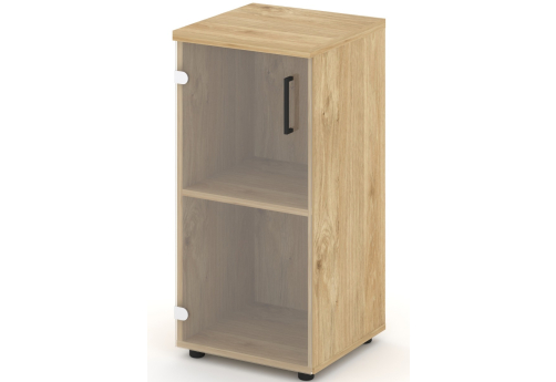 Шкаф низкий узкий левый (1 низкий фасад стекло сатин в раме) ЗС ЛХДФ Сити Офис Вуд, цвет тиквуд светлый
