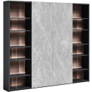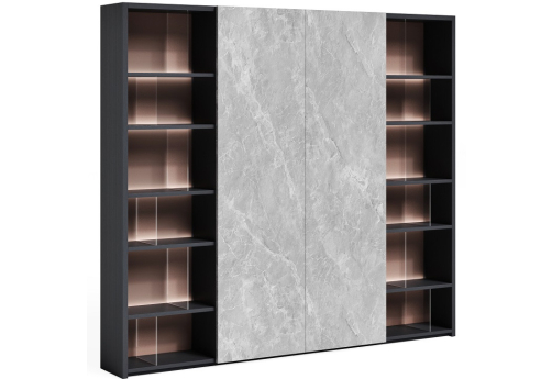 по краям шкафа размещена светодиодная подсветка, которая включается при движении дверей в центр композиции