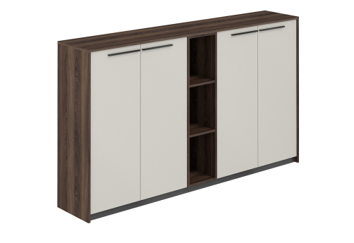 Шкаф низкий составной (2 закрытых шкафа + стеллаж) Луара, цвет дуб адриа + серый