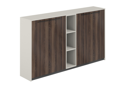Шкаф низкий составной (2 закрытых шкафа + стеллаж) Луара, цвет дуб адриа + серый
