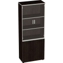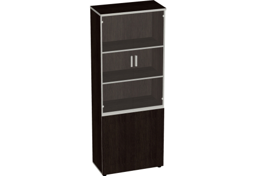 Шкаф широкий высокий (3 полки под стеклом) Валенсия, цвет венге