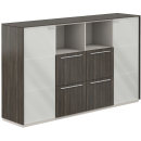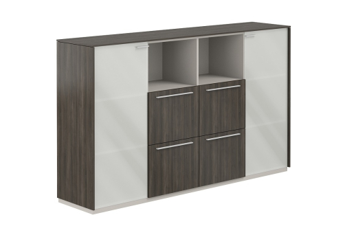 Шкаф средний 4 двери с прозрачным стеклом Дания, цвет серый камень + брэнсон трюфель