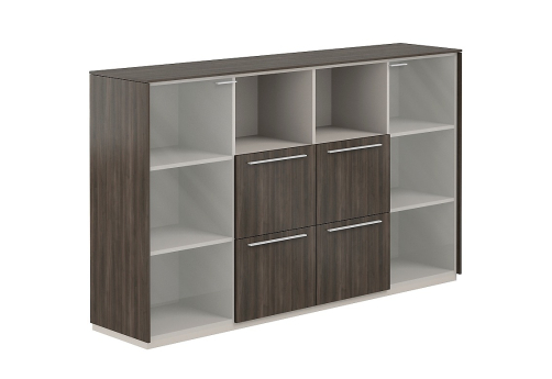 Шкаф средний 4 двери с прозрачным стеклом Дания, цвет серый камень + брэнсон трюфель