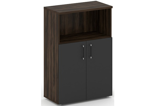 Шкаф средний широкий (1 открытая полка), цвет тиквуд темный + графит