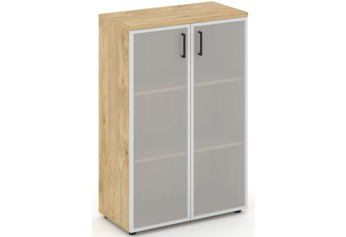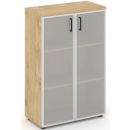 Шкаф средний широкий (2 средних фасада стекло сатин в раме) ЗС ЛДСП Сити Офис Вуд, цвет тиквуд светлый
