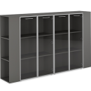 Шкаф высокий широкий (3 полки под стеклом) двойной с боковыми стеллажами Валетта Антрацит, цвет антрацит