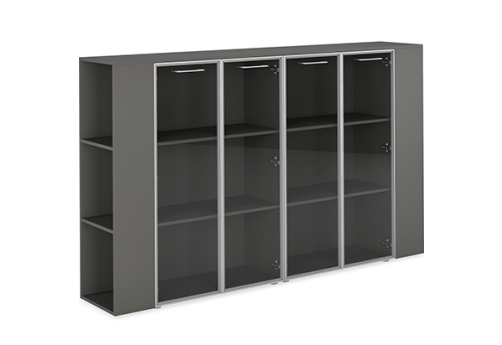 Шкаф высокий широкий (3 полки под стеклом) с боковыми стеллажами Валетта Антрацит, цвет антрацит