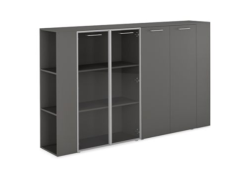 Шкаф низкий широкий cо стеллажами Валетта Антрацит, цвет антрацит