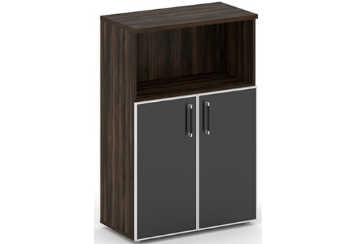 Шкаф средний широкий (1 открытая полка), цвет тиквуд темный + графит