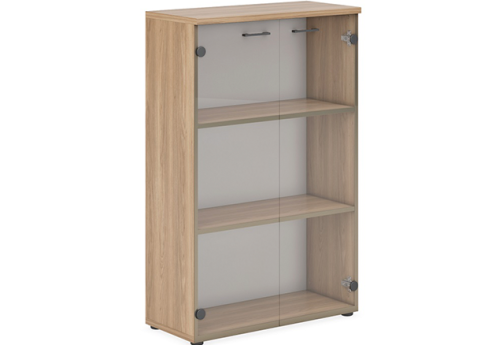 Шкаф средний широкий со стеклом Дейли, цвет дуб + белый