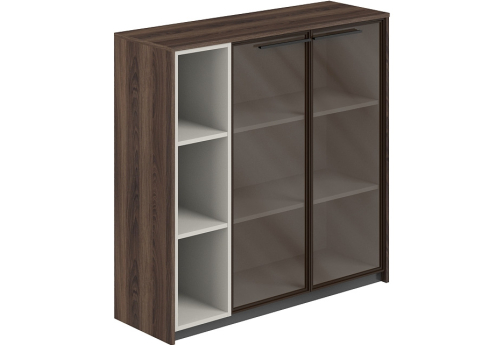 Шкаф средний составной (1 со стеклом + стеллаж) левый Луара, цвет дуб адриа + серый