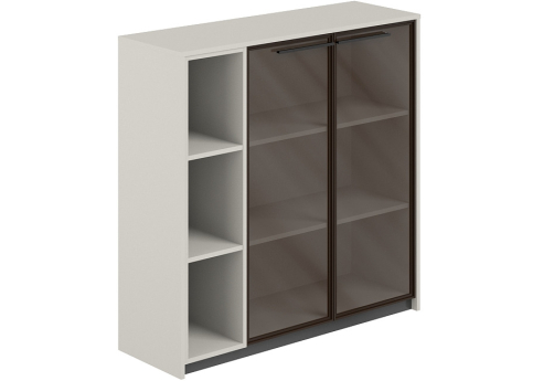Шкаф средний составной (1 со стеклом + стеллаж) левый Луара, цвет серый