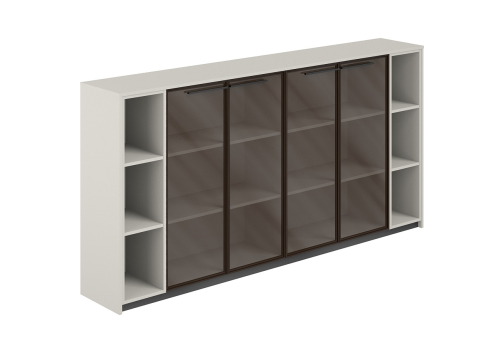Шкаф средний составной (со стеклом 2 шт. + 2 стеллажа) Луара, цвет серый