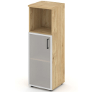 Шкаф высокий узкий левый (1 низкий фасад ЛДСП + 1 низкий фасад стекло прозрачное) ЗС ЛДСП Сити Офис Вуд, цвет тиквуд светлый