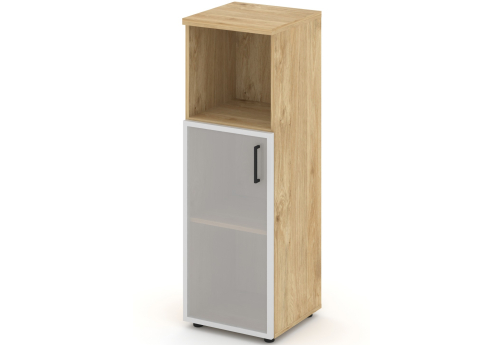 Шкаф средний узкий левый (1 низкий фасад стекло сатин в раме) ЗС ЛХДФ Сити Офис Вуд, цвет тиквуд светлый