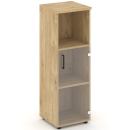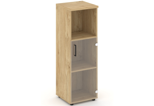 Шкаф средний узкий левый (1 низкий фасад стекло сатин в раме) ЗС ЛДСП Сити Офис Вуд, цвет тиквуд светлый