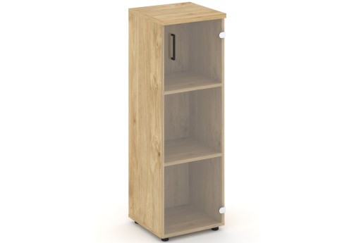 Шкаф высокий узкий правый (1 низкий фасад ЛДСП + 1 средний фасад стекло прозрачное) ЗС ЛХДФ Сити Офис Вуд, цвет тиквуд светлый
