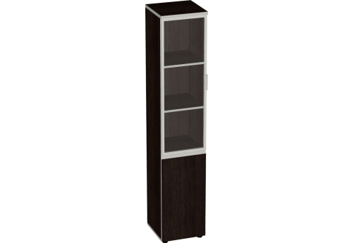 Шкаф узкий высокий (3 полки под стеклом) Валенсия, цвет венге