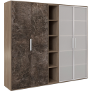 Шкаф для бумаг со стеклом, цвет вяз + бетон темный
