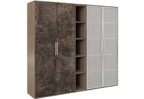 Шкаф средний 4 створки, с нишей Супер Т, цвет вяз + бетон темный