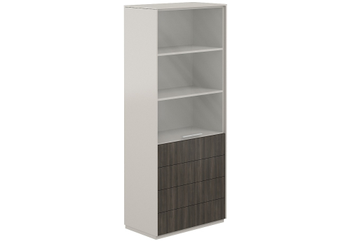 Шкаф высокий с матовым стеклом 4 ящика Дания, цвет серый камень + брэнсон трюфель