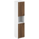 Шкаф высокий с нишей левый (задняя стенка ЛДСП) Индиго Вуд, цвет дуб модена + белый