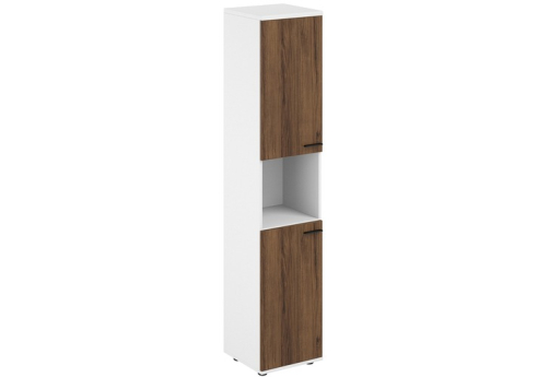 Шкаф средний узкий левый (1 низкий фасад ЛДСП) ЗС ЛХДФ Сити Офис Вуд, цвет тиквуд светлый