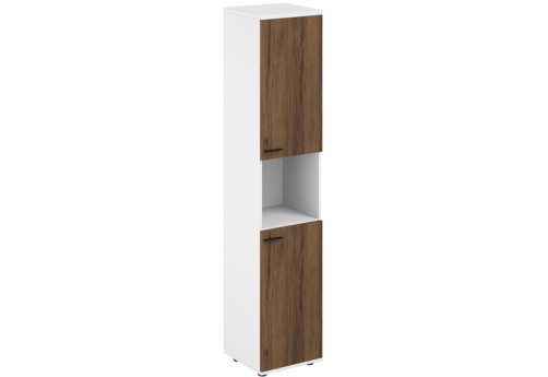 Шкаф высокий с нишей правый (задняя стенка ЛДСП) Индиго Вуд, цвет дуб модена + белый