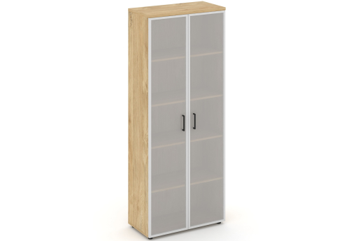 Шкаф высокий широкий (2 высоких фасада стекло сатин в раме) ЗС ЛДСП Сити Офис Вуд, цвет тиквуд светлый