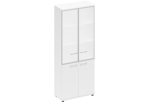 Шкаф высокий широкий (3 полки под стеклом) Авилла, цвет белый премиум