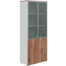 Шкаф высокий широкий (3 полки под стеклом) Пальмира, цвет орех бренди + белый