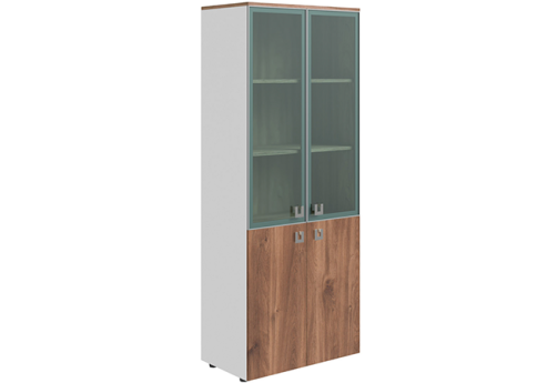Шкаф высокий широкий закрытый Пальмира, цвет орех бренди + белый