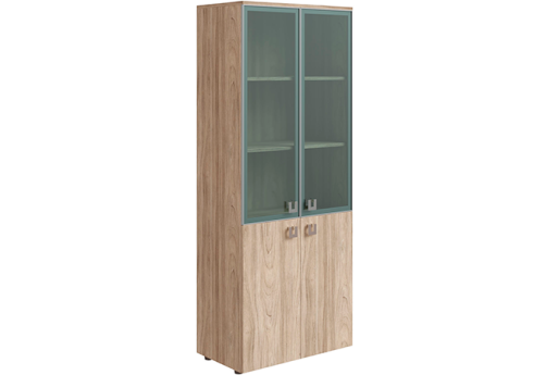 Шкаф высокий широкий (3 полки под стеклом) Пальмира, цвет светлый дуб