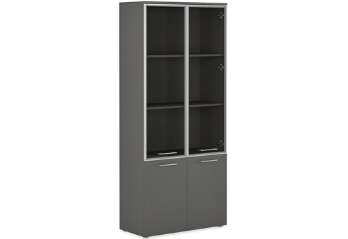 Шкаф средний широкий двойной со стеклом и боковыми стеллажами Валетта Антрацит, цвет антрацит