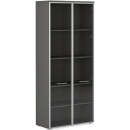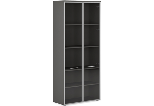 Шкаф высокий широкий со стеклом двойной с боковыми стеллажами Валетта Антрацит, цвет антрацит