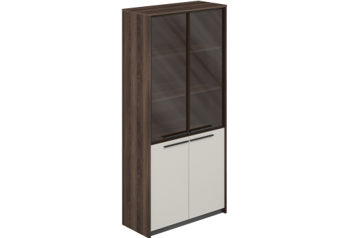Шкаф высокий со стеклом Луара, цвет дуб адриа + серый