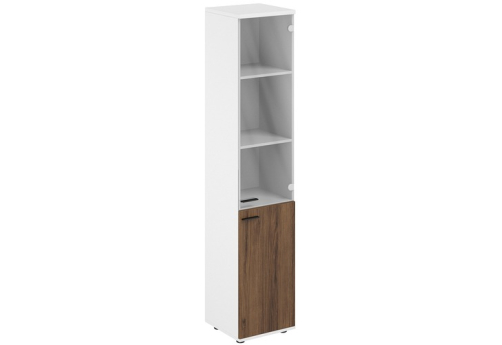 Шкаф высокий со стеклом правый (задняя стенка HDF) Индиго Вуд, цвет дуб модена + белый