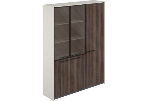 Шкаф высокий составной (1 со стеклом + 1 узкий) правый Луара, цвет дуб адриа + серый