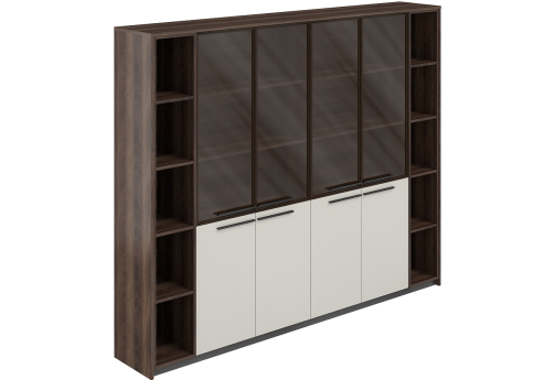 Шкаф высокий составной (со стеклом 2 шт. + 2 стеллажа) Луара, цвет дуб адриа + серый