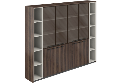 Шкаф высокий составной (со стеклом 2 шт. + 2 стеллажа) Луара, цвет дуб адриа + серый
