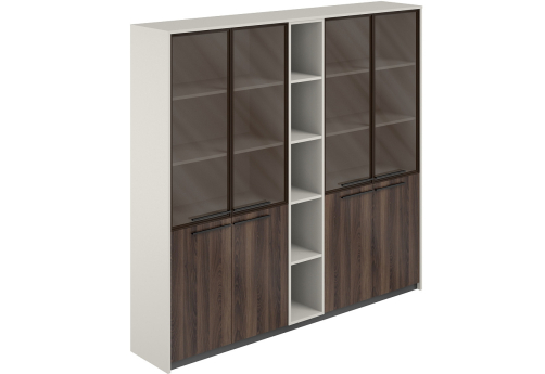 Шкаф высокий составной (со стеклом 2 шт. + стеллаж) Луара, цвет дуб адриа + серый